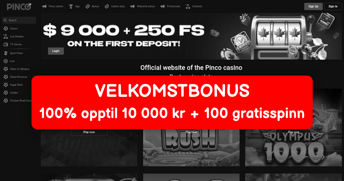 Uten dokumenterte tall fra Pinco Casino bør man anta lite og verifisere alt. Det samme gjelder eventuell no deposit bonus (casino uten innskudd / no deposit bonus):